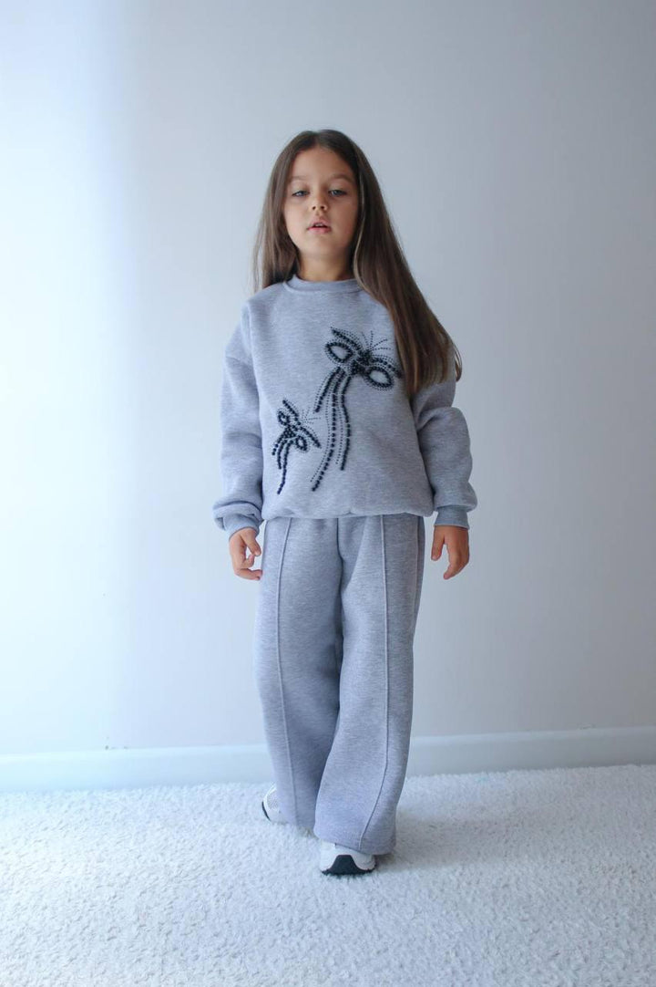 طقم رمادي مطرز فراشات 3-10 سنوات