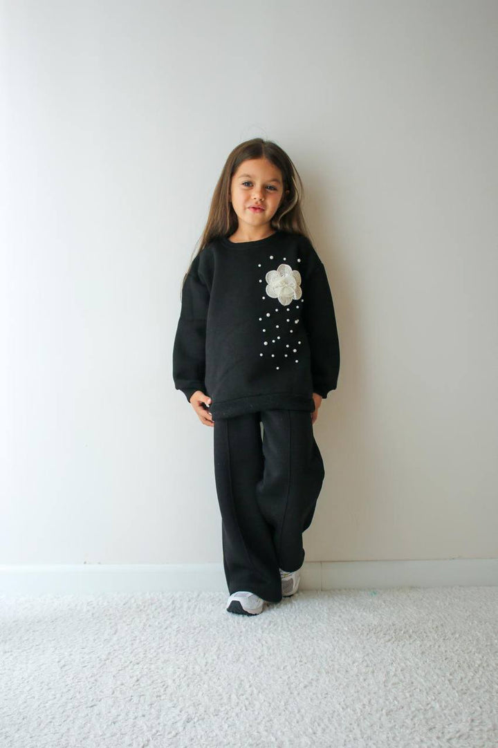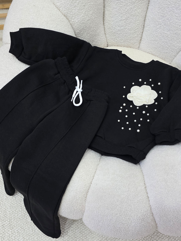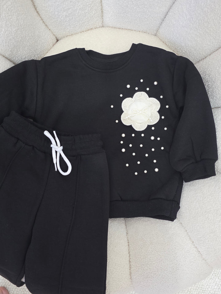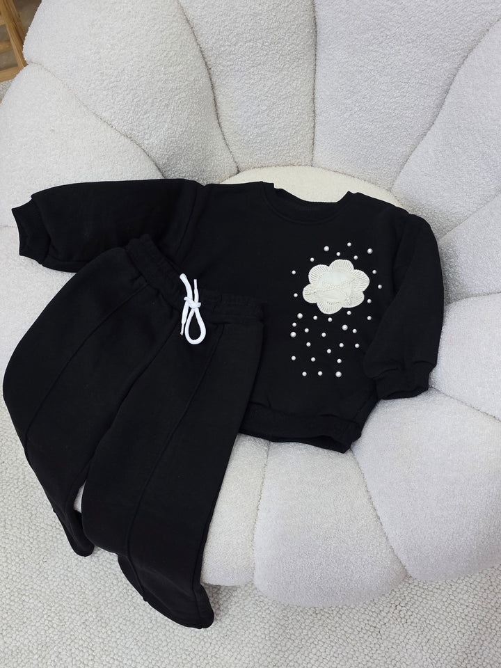 طقم ناعم اسود تطريز 3-10سنوات